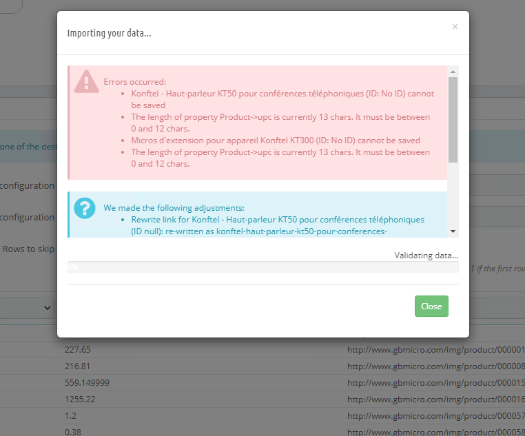 Prog Ordiexpress Posted June 2, 2020 Author Share Posted June 2, 2020 (edited) Im using version 1.7.6.5 Ive changed all instances in the database where UPC exist from 12 to 50 nvarchar Ive changed "AdminImportController.php" default value ive changed "Combination.php" upc 50 ive changed "store.php" upc 50 ive changed "validate.php" upc = 50 I tried every post in the forum involving this issue and i cant do it. Edited June 2, 2020 by Prog Ordiexpress (see edit history) Link to comment Share on other sites More sharing options...
