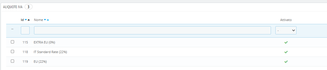 Giò 22 Posted June 5, 2020 Share Posted June 5, 2020 Salve a tutti, ho un problema con le varie aliquote, ho creato tre tasse e tre aliquote di riferimento (allegato 1 e 2). Una per l'ITALIA una per l'EUROPA e l'ultima per l'ESTERO. Testando lato front-office alcune nazioni ho notato che se imposto un indirizzo Italia o estero il calcolo del prezzo è corretto, ma per se imposto nazioni europee non viene calcolata l'IVA. Come potete vedere dall'ultimo allegato ho settato in questo modo l'aliquota di riferimento alla nazioni europee: Non capisco dove possa essere l'errore dato che le altre due funzionano correttamente... Link to comment Share on other sites More sharing options...