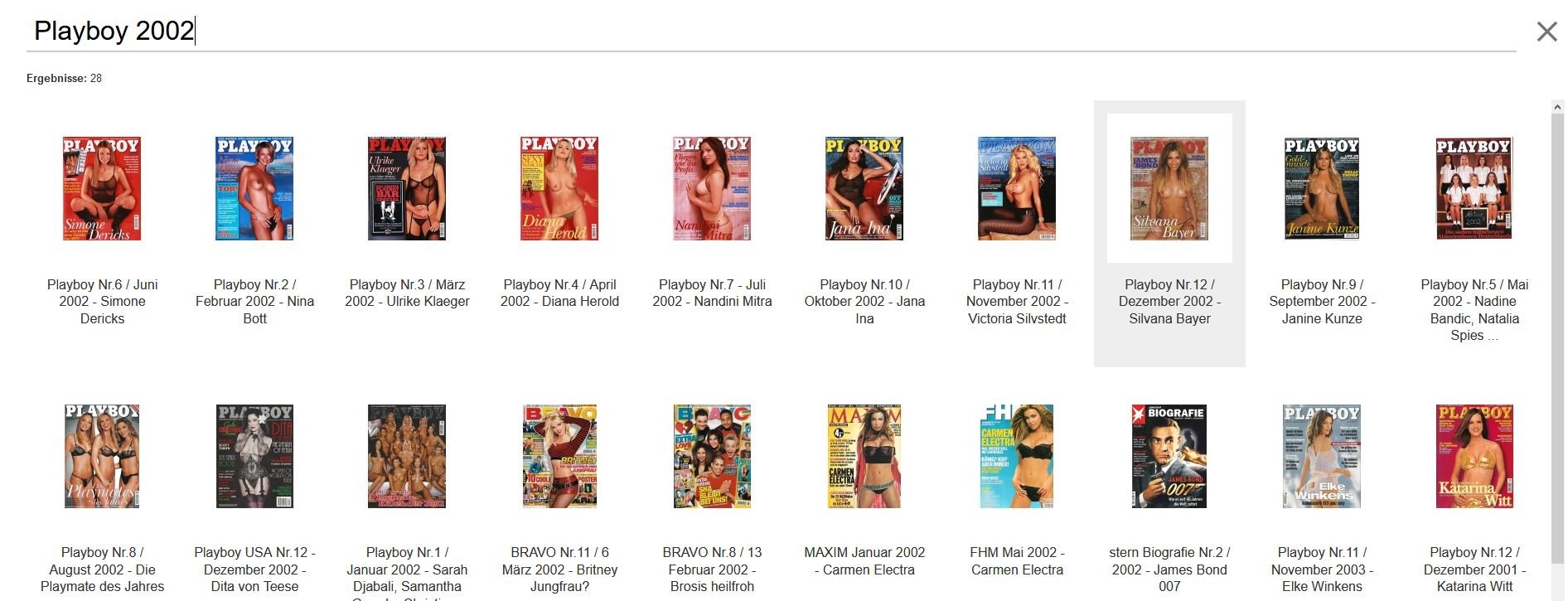 SliderFlash Posted June 6, 2020 Share Posted June 6, 2020 vor 5 Stunden schrieb altezeit: Wenn ein Kunde zum Beispiel Playboy 2002 sucht, kommt als erstes Playboy Magazine von 1993 usw also ich habe suche "Playboy 2002" eingegeben wird korrekt gefunden Link to comment Share on other sites More sharing options...