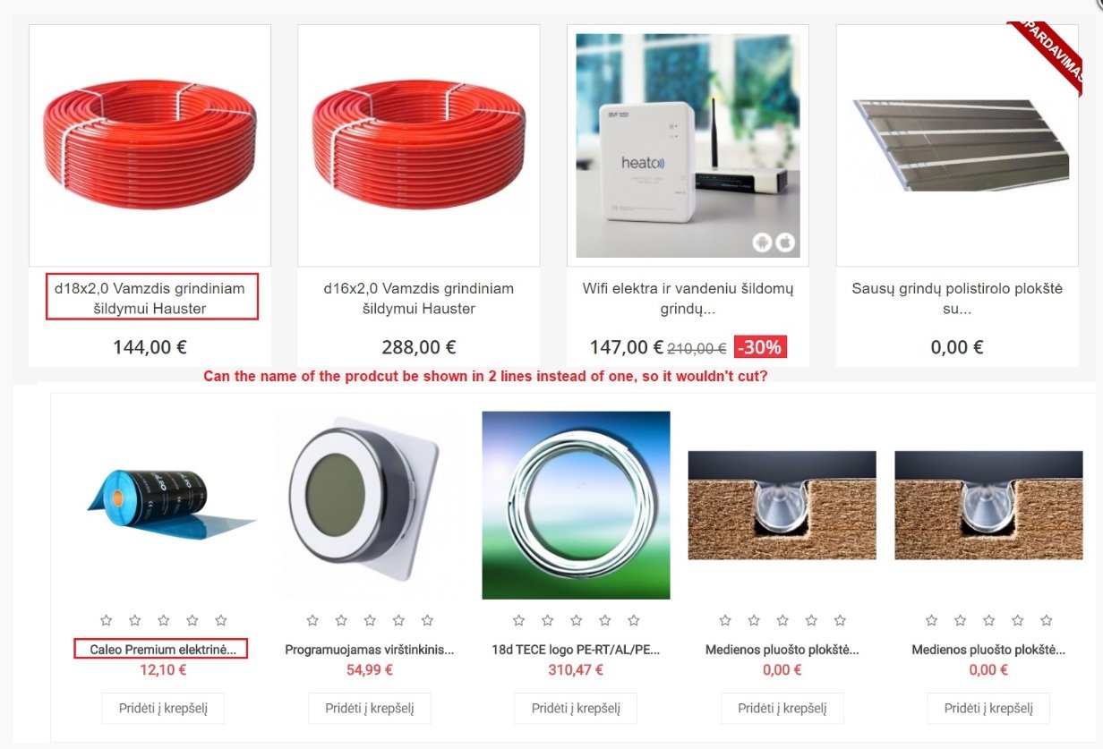 Armis41 Posted June 14, 2020 Share Posted June 14, 2020 Hello there, Right now in my shop product names are in 1 line and often you can see only part of the name. How to change so it would be at least two lines? Picture attached. Link to comment Share on other sites More sharing options...