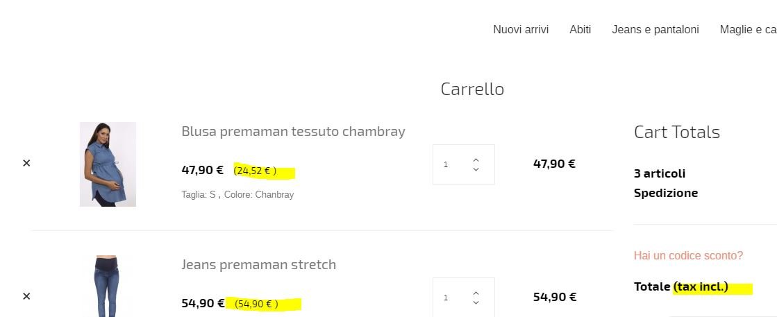 Buonasera, vorrei tradurre o eliminare il testo tax included dal carrello ed inoltre non capisco come mai accanto al prezzo del prodotto mi compare tra parentesi un altro prezzo in allegato gli screen