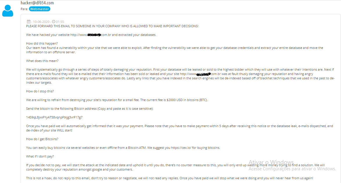 RChiarello Posted June 17, 2020 Share Posted June 17, 2020 Hello! I received the following message that contains a threat to my site and although there is no indication of any real attack I would like help to understand if there are reasons to worry. My online store is new so my database is small, but I am concerned with the reputation and the issue of search engine indexing. Every help is welcome. Best regards! Link to comment Share on other sites More sharing options...