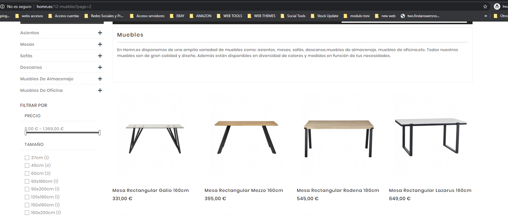 ventura Posted June 23, 2020 Share Posted June 23, 2020 On 6/23/2020 at 9:01 AM, toni_svo said: Hola Ventura, no funciona porque solo me aplica las dos lineas en la primera pagina de muebles en el resto no mira: En la version movil funciona pero me recorta el titulo y yo lo que quiero es que se vea completo sin crear huecos no con los puntos suspensivos Haber si me podeis ayudar porfa. UN saludo. -Será un tema de cache de tu instalación porque las clases de los titulos html es la misma independientemente de la paginación -Para quitar el truncado de los nombres tendras que editar el .tpl -En version para movil: Link to comment Share on other sites More sharing options...