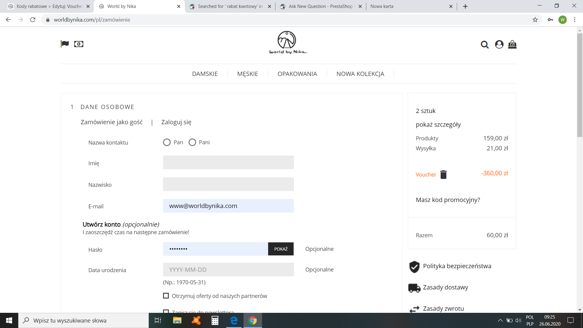 i jak robię próbne zamówienie i wpisuje wygenerowany kod to pojawia mi się -360 zł nieważne ile rzeczy w koszyku.