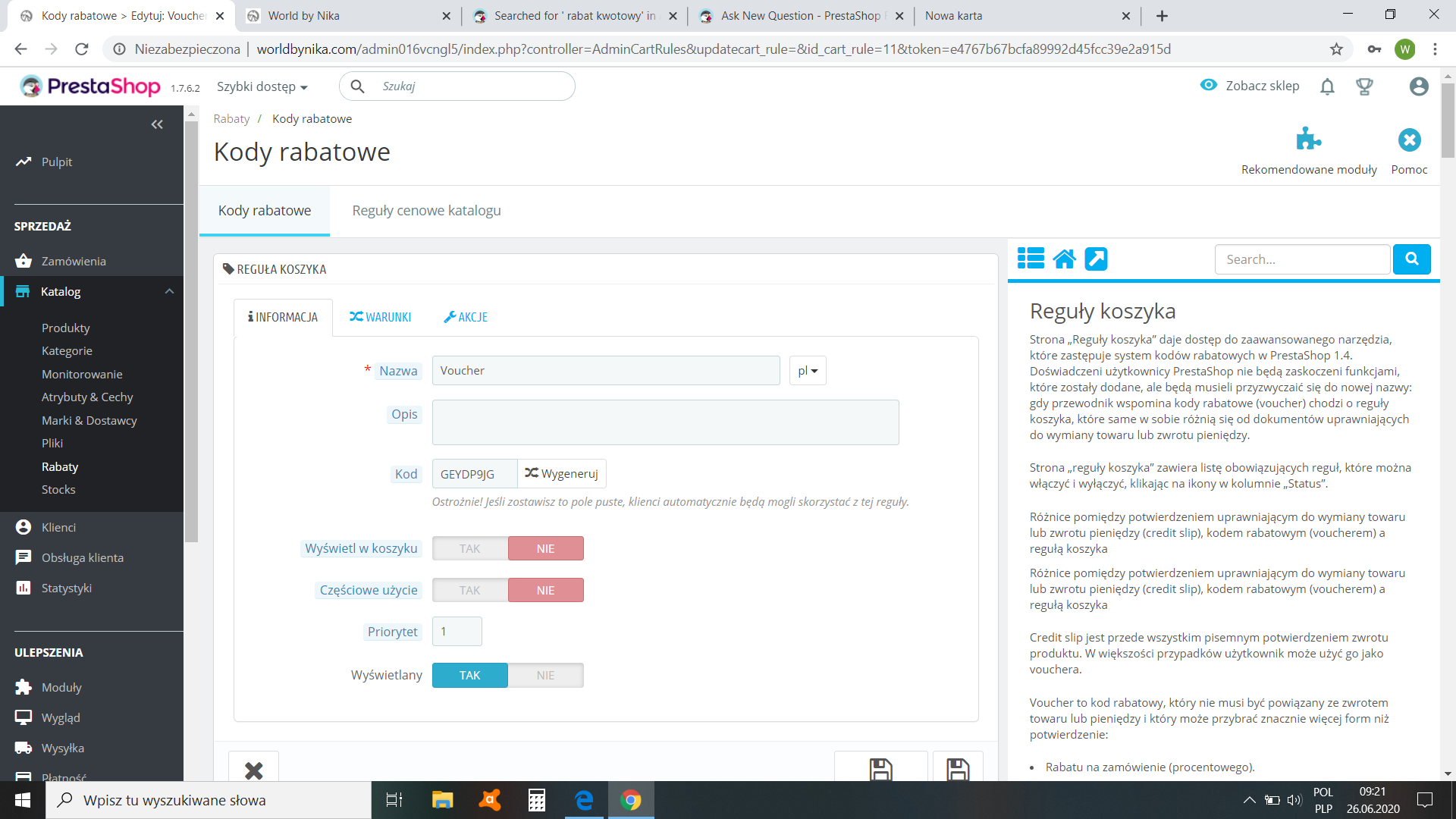 Musze ustawić voucher na kwotę 120 zł na zakupy w moim sklepie. Wchodzą w to wszystkie towary, jakie są.