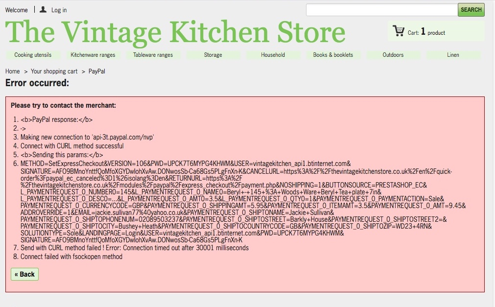 Our (outsourced) webmaster was convinced that it was PayPal rather than Prestashop - or indeed a problem on our own website.