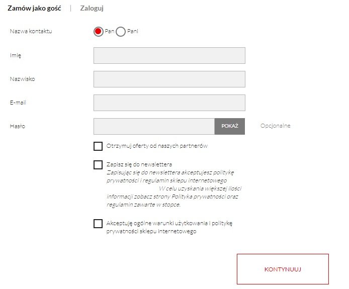 Mam problem z checkoutem w sklepie internetowym. Mianowicie w przypadku opcji zaznaczenia zamówienia jako gość wymagane jest utworzenie hasła oraz zaznaczenie wszystkich opcji widocznych na screenie. W przypadku nie wpisania hasła oraz nie zaznaczenia chceckboxów nie możliwe jest przejście do kolejnych kroków. W żaden sposób nie mogę sobie z tym poradzić. Czy ktoś ma jakiś pomysł aby temu zaradzić lub całkowicie usunąć hasło oraz dwa pierwsze checkboxy i zostawić wyłącznie akceptację regulaminu?