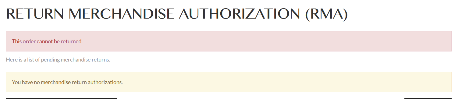 Simon Zhang Posted July 20, 2020 Author Share Posted July 20, 2020 (edited) I don't know if anyone encountered this problem at all, I am new to prestashop and I've been trying to figure this out unsuccessfully ^^'. Can anyone please help :). I tried directly to assign the value of $return_allowed to 1 so that I force the display of the checkboxes and overall (RMA display) when in the order-detail. My order status is on delivered. But when I click on the button to create an RMA, I get this : So I am kind of lost right now.. Edited July 20, 2020 by Simon Zhang (see edit history) Link to comment Share on other sites More sharing options...