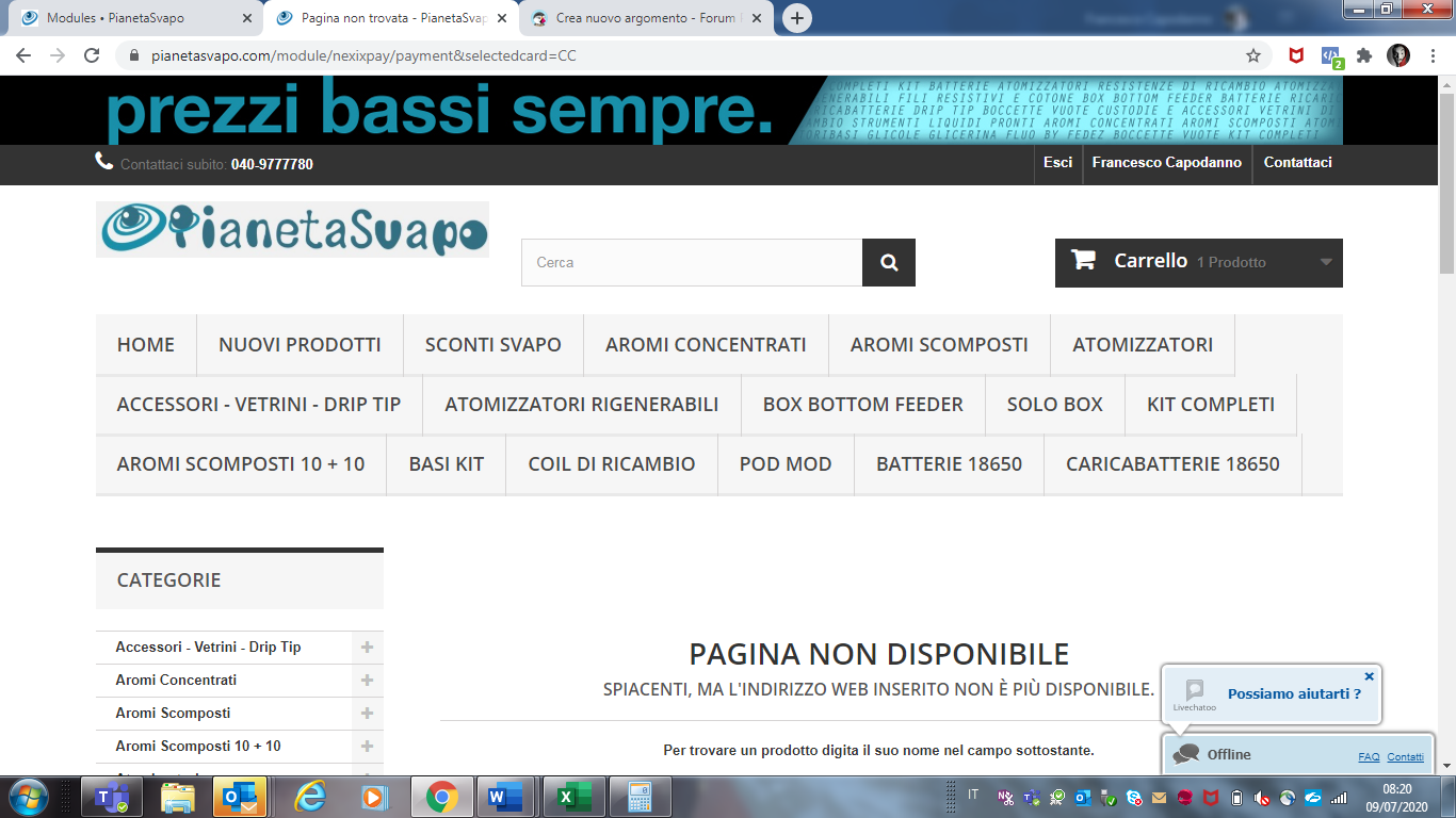 Pianetasvapo Posted July 9, 2020 Share Posted July 9, 2020 Buongiorno a tutti, da qualche giorno e dopo l'aggiornamento il modulo Nexi ha smesso di funzionare. Quando si conferma il carrello e si seleziona il metodo di pagamento Nexi non trova più la pagina ed ecco cosa compare. Ho contattato il servizio di supporto ma da liunedì non hanno ancora risposto. Se qualcuno ha consigli o suggerimenti o se gli è già capitato... Link to comment Share on other sites More sharing options...