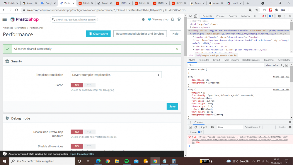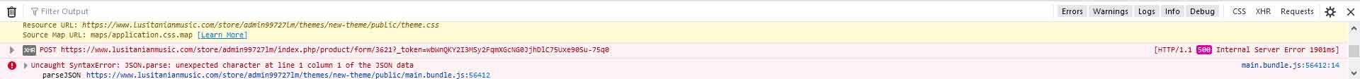 Joolivus Posted March 18, 2021 Share Posted March 18, 2021 (edited) Shop version 1.7.2.4 debug mode is activated, same error message. pressing F12 on Mozillla, checking debugger and after hit the [Learn more]: "https://developer.mozilla.org/en-US/docs/Web/JavaScript/Reference/Errors/JSON_bad_parse" Edited March 18, 2021 by Joolivus adding prtscr (see edit history) Link to comment Share on other sites More sharing options...