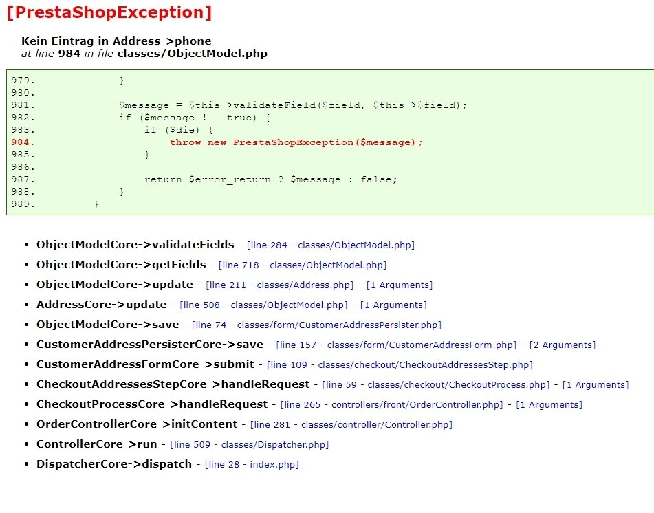 Wieso will Prestashop trotzdem die Telefonnummer und steigt bei Nichteingabe aus, obwohl sie kein Pflichtfeld mehr ist?