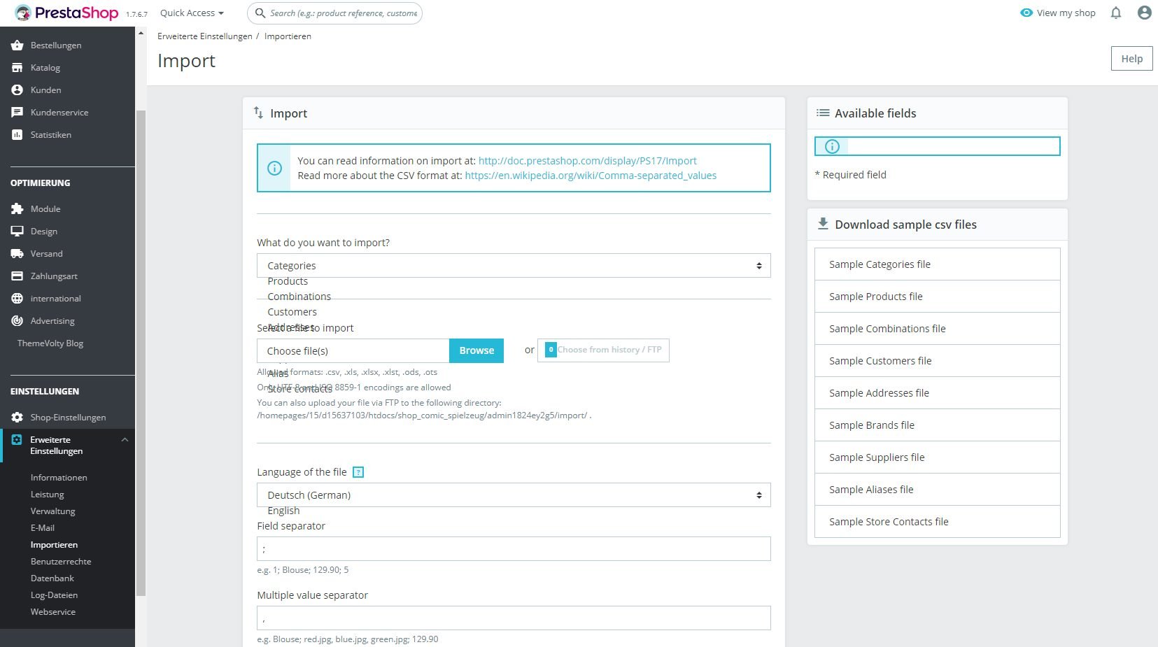 ComicSpielzeug Posted July 23, 2020 Share Posted July 23, 2020 Hi, I'm new to Prestashop, installed it and added a template. My backoffice dropdown menus look funny and I can't choose anything, for example @ file upload/download - see picture. But pretty much any dropdown won't work. Any help what i could try? Link to comment Share on other sites More sharing options...