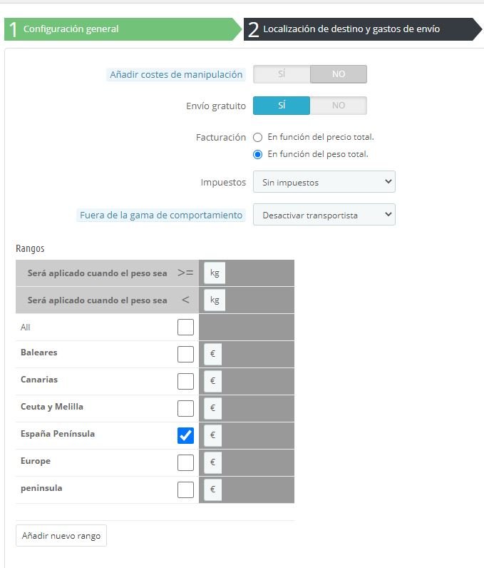 walteralbela Posted July 27, 2020 Share Posted July 27, 2020 Hola a todos! Tengo un problema que no llego a resolver, os cuento. En nuestra web realizamos envíos solo a península y tenemos creadas zonas distintas para que en el momento que se realice un pedido desde Baleares, Canarias, Ceuta y Melilla no este disponible el transporte y de esta manera limitar la compra a los residentes en península, esto en PS 1.6 ya lo habíamos hecho y funcionaba perfecto pero ahora en PS 1.7 no funciona, esta siempre disponible el transporte para toda España. Hemos probado a eliminar los transportistas y crearlos nuevamente, eliminar las zonas y crearlas nuevamente, eliminar las provincias y volverlas a importar y todo con el mismo resultado, siempre esta disponible el transporte. Alguna idea? De antemano, gracias. Link to comment Share on other sites More sharing options...