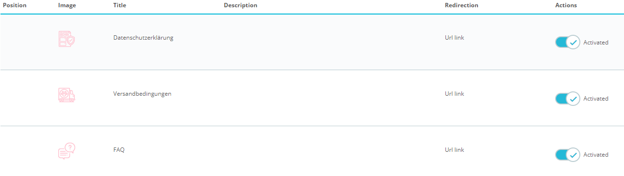 Seit kurzem funktioniert bei mir die Customer Reassurance nicht mehr. Also dem Kunden werden diese auf der Artikelseite nicht mehr angezeigt (sprich Datenschutz, Versandbedingungen, FAQ).