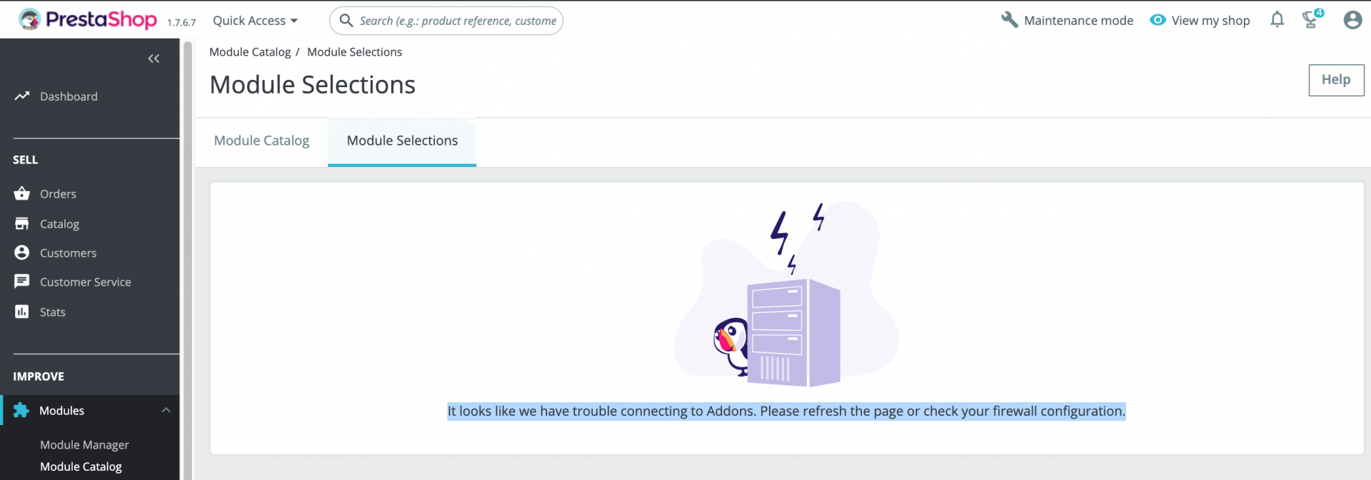 cmarie2 Posted July 28, 2020 Share Posted July 28, 2020 (edited) Using Prestashop version 1.7.6.7 Purchased theme go to modules catalog while I am signed in and it says firewall needs to be disabled. I disabled all firewalls on my PC Mcafee is completely turned off. Checked windows firewall turned off I have tried on my phone, tablet laptop and I receive the same message as shown It looks like we have trouble connecting to Addons. Please refresh the page or check your firewall configuration Turned Off the Firewall via the Advanced Security Window Adjusted the Network Location Awareness Startup Type Setting Tried on all browsers too Did everything I think I possibly could. Could this be a block on my network ? I have been doing this for 2 days now. Please can someone advise me what I can do to access my paid modules ? Thanking you in advance Cynthia Edited July 28, 2020 by cmarie2 left something out (see edit history) Link to comment Share on other sites More sharing options...