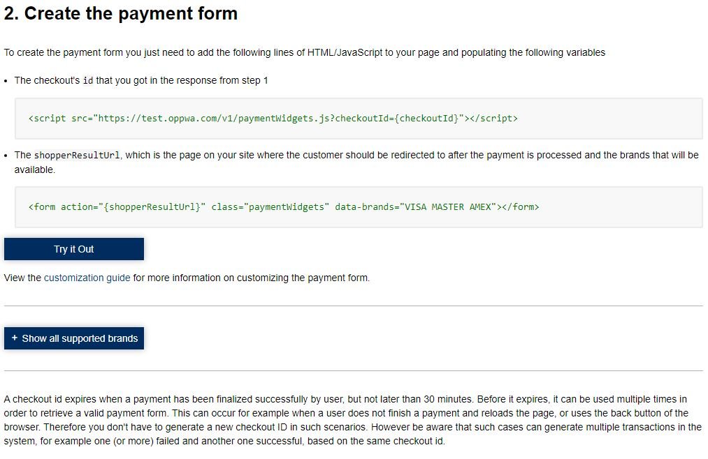 ranzi Posted July 29, 2020 Share Posted July 29, 2020 Hello I am trying to manually integrate PayUnity's credit card payment option. At point 2 I have a question: In which file do you enter these two lines? (<script src ... / <form action) Here is the link with the integration guide where you can see the task: https://payunity.docs.oppwa.com/tutorials/integration-guide I am using prestashop 1.6.1.17 I can't use the modul from PayUnity because I am using not the standard Prestashop checkout. I hope someone can help me. Link to comment Share on other sites More sharing options...