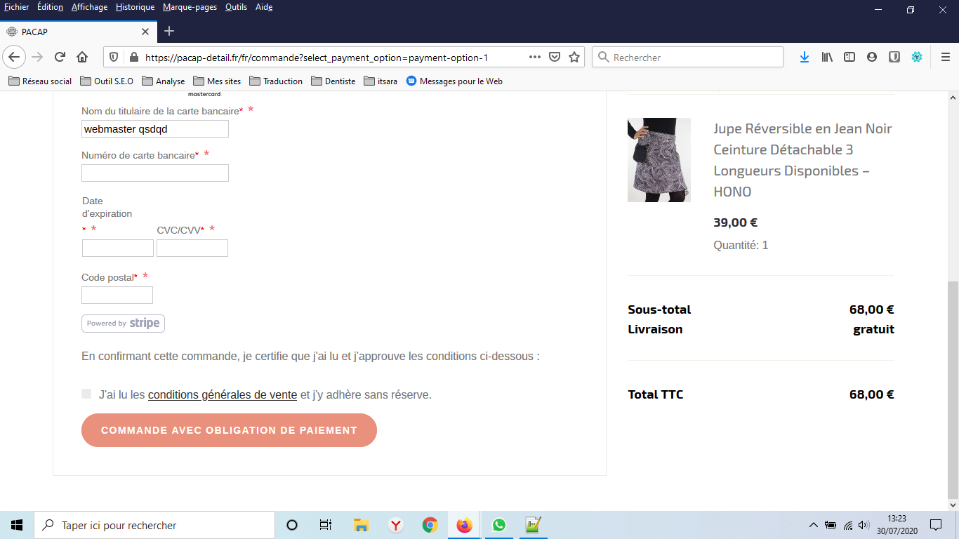 guillaume2vo Posted July 30, 2020 Share Posted July 30, 2020 Bonjour Je suis sur prestashop 1.7.6.5, et j'ai fait une instalation de stripe, or, lors ce que je me connect avec l'api etc tout est ok. Par contre sur les champs de cb & date de validation & cvg, je ne peux rien n ecrire dessus comment je peux faire pour que cela fonctionne Link to comment Share on other sites More sharing options...