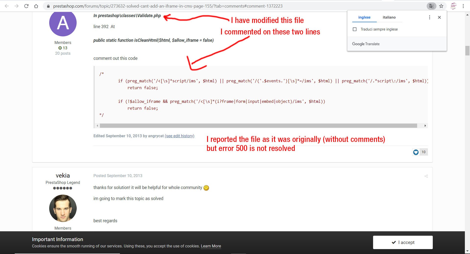 Mastuzza Posted July 30, 2020 Share Posted July 30, 2020 Good morning, i am developing a site in prestashop 1.7.x. I commented a couple of lines in a prestashop file, the file is called validate.php, after the modification I replaced the validate.php file by making a preventive copy first. I'm going to look at the effect of the change and the site, both public and administrative side, is no longer seen providing the http error 500 error I restored the file that I had previously duplicated, but nothing to do the error always occurs. Could you help me solve it? Thank you in advance Regards Maximum Link to comment Share on other sites More sharing options...