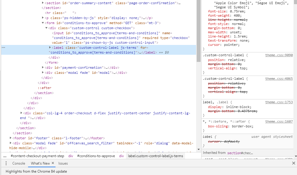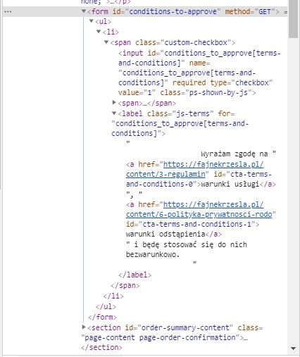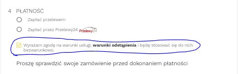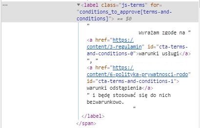 Chciałbym zmienić ten fragment tekstu w checkbox'ie na: Akceptuje warunki usługi, warunki odstąpienia od umowy i będę się do nich stosować