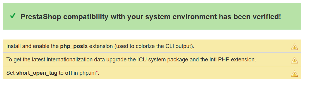 BeReal Posted August 6, 2020 Share Posted August 6, 2020 (edited) System compatibility directly bypassed in the installation. He did not give any warning. There were problems in the picture, but the installation is complete. At the end of the installation, the admin page and the user page were white. and I am uploading the log file, what is the problem? What problems will happen if what you see in the picture is not corrected. prestashop 1.7.6.7 Php 7.2 error_log Edited August 6, 2020 by BeReal (see edit history) Link to comment Share on other sites More sharing options...