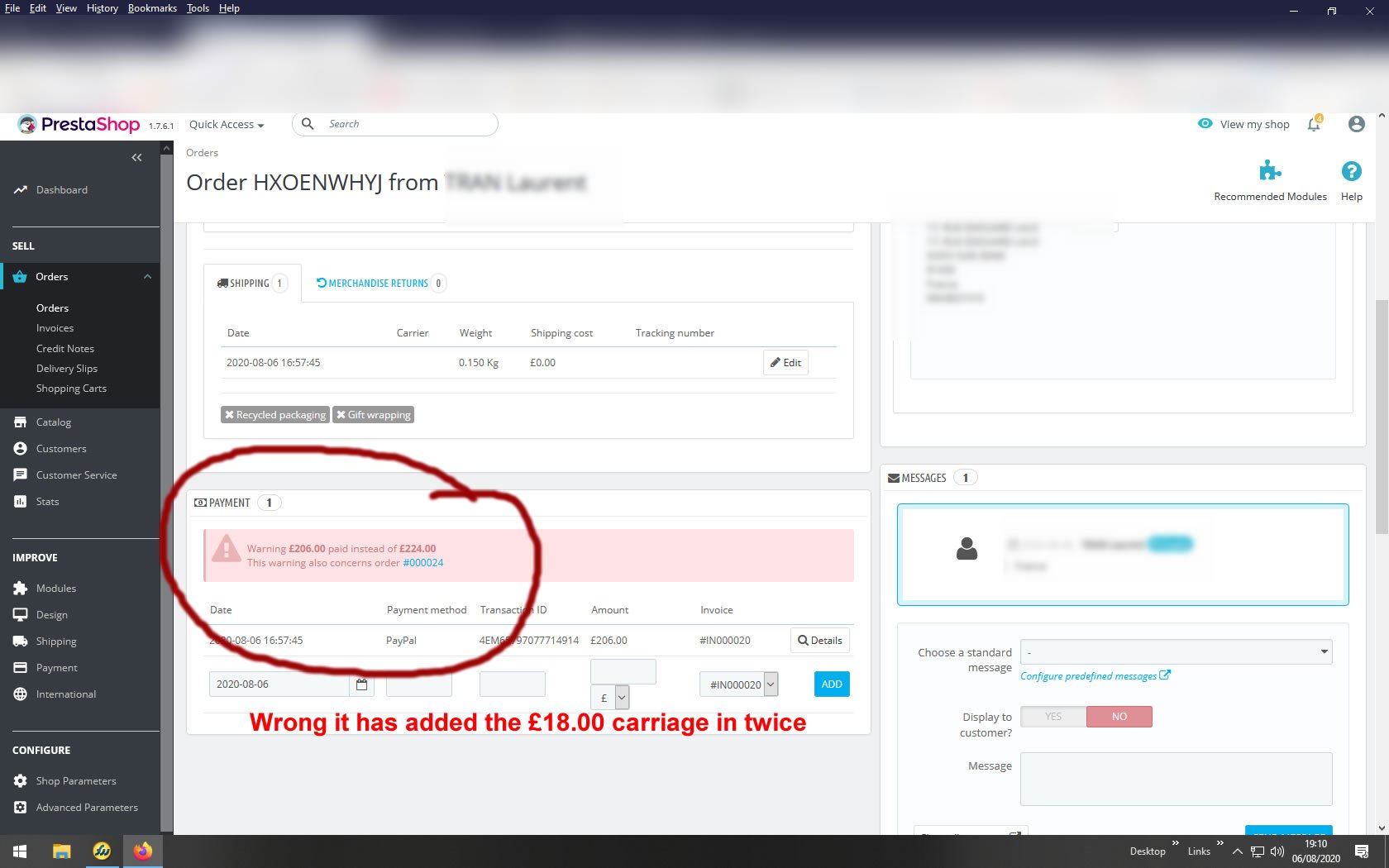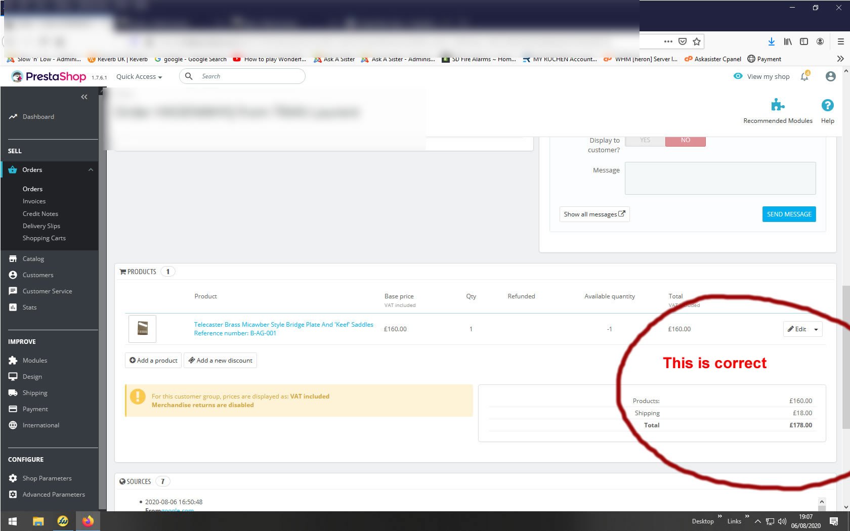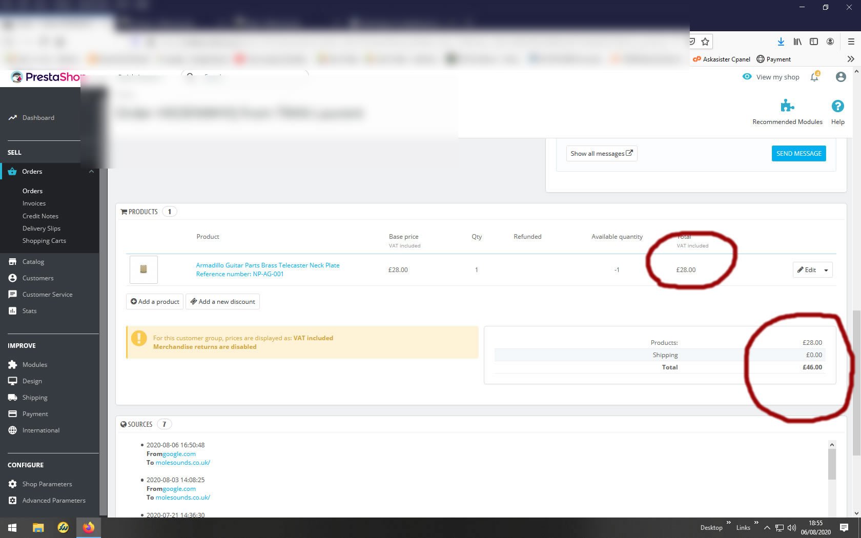 Mole Sounds Posted August 6, 2020 Share Posted August 6, 2020 (edited) I have recently started a shop and have a bit of a puzzle. I need help please to understand if this is a bug or config issue. A customer has placed one order today for 2 items. Both items, 1 item was in stock and the other not. It has split the order in 2. Also on the order with the lower value item the detail shows as if the carriage has been added on again (see pic). The dashboard also tells me he has underpaid because it thinks the second order with the backordered item when shipped will attract carriage again. This is most misleading. Yet, he has paid the correct amount so I assume the final cart total was correct. Why am I also getting an option to show exchange between US dollar and UK Sterling when I only have one currency set up? Edited August 6, 2020 by Mole Sounds Changes pictures (see edit history) Link to comment Share on other sites More sharing options...