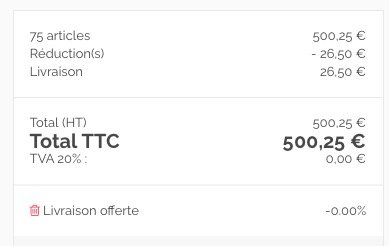 Romain Taupiac Posted August 7, 2020 Share Posted August 7, 2020 (edited) Bonjour. Je travaille sur le site d'un client distributeur d'instruments de musique et donc qui s'adresse uniquement aux pros. Config : ps 1.7.6.2, theme payant wharehouse acheté sur thème forest). Le site : https://mymusicdistribution.fr La boutique est configurée en B2B avec affichage des prix HT. Mon problème se situe au niveau du calcul des frais de ports offerts à partir de 500€ d'achat via le paramètre en bo transporteurs/préférences/Livraison gratuite à partir de..." PS calcule, pour appliquer (ou non) la gratuité des FDP sur le montant TTC. Hors, j'ai besoin que cela se calcule sur le montant total des produits HT. Car nous avons des clients pros qui ne payent pas la tva et d'autres qui la payent (les gens en intra communauté ne payent pas la tva). Du coup si je paye la tva j'ai les FDP offerts à partir de 417€ HT(soit500 ttc avec 20% de tva) donc pas bon, et si je ne suis pas asujetti à la tva car je me fais livrer en espagne avec un N° de tva intracom, alors là les FDP sont bien offerts à partir de 500€ ht (et donc ttc vu qu'il n'y a pas de tva applicable). J'ai trouvé un override intéressant mais qui ne fonctionne pas : https://www.team-ever.com/problemes-et-resolutions-sous-prestashop/#comment-85039 Cet override propose de calculer les remises sur le HT et non sur le TTC, mais je penses que la classe qui gère les frais de ports offerts à partir de x€ est différente. Serriez-vous me dire quelle classe gère cela et auriez-vous un code à appliquer en override ? Merci d'avance pour vos réponses. Romain PS : en PJ, un screenshot pour mieux comprendre mes propos Edited August 7, 2020 by Romain Taupiac Résolu (see edit history) Link to comment Share on other sites More sharing options...