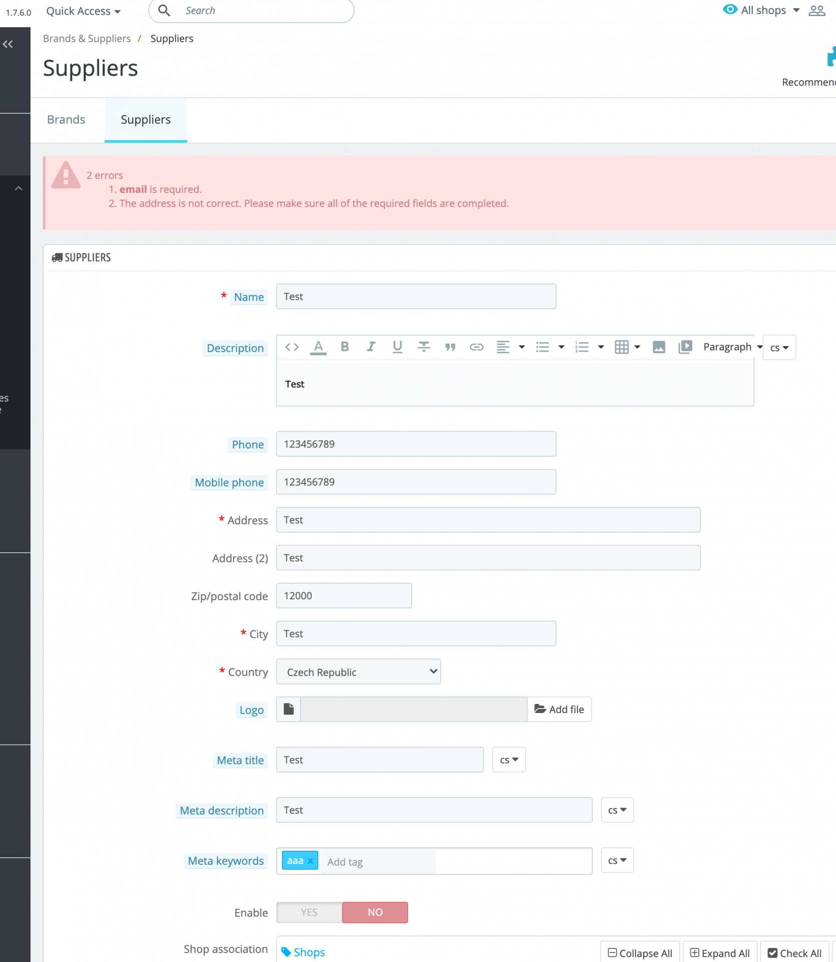 JanHavlicek Posted August 7, 2020 Share Posted August 7, 2020 (edited) Hi, I'm using Prestashop 1.7.6.0 in multistore mode. I haven't used the Supplier feature before, but now I'd like to do so. But when I try to create new supplier, always get the errors - Email is required & address is not correct. There is no field to put the e-mail in. Address format should be fine too. My Presta isn't modified that much, probably these errors are caused by some module (maybe they are not?). Becuase I tried to create new supplier on clean PS 1760 install on my localhost and it went well. But - can anybody point me to some direction please? I tried to check the override folder, but didn't find anything. It should be caused by some ovverride, shouldn't it? Tried to google these for some time, searched this forum (I thought it may be just 1760 bug), wasn't sucessful either 😕 Thank you very much for your time and help. Edited August 7, 2020 by JanHavlicek (see edit history) Link to comment Share on other sites More sharing options...