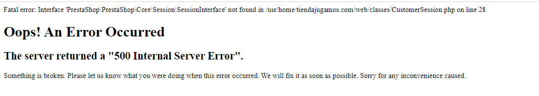 Adrián de Grafreak Posted August 12, 2020 Share Posted August 12, 2020 Comprueba que en la instalación de PrestaShop tienes este fichero:https://github.com/PrestaShop/PrestaShop/blob/1.7.6.7/src/Core/Session/SessionInterface.php Respecto al plugin de links, simplemente bajate el repo y súbelo en tu carpeta moduleshttps://github.com/PrestaShop/ps_linklist Te estoy hablando como si tuvieras PrestaShop 1.7.6.7 y con PHP 7.2, si no ya dirás. Salut! Link to comment Share on other sites More sharing options...