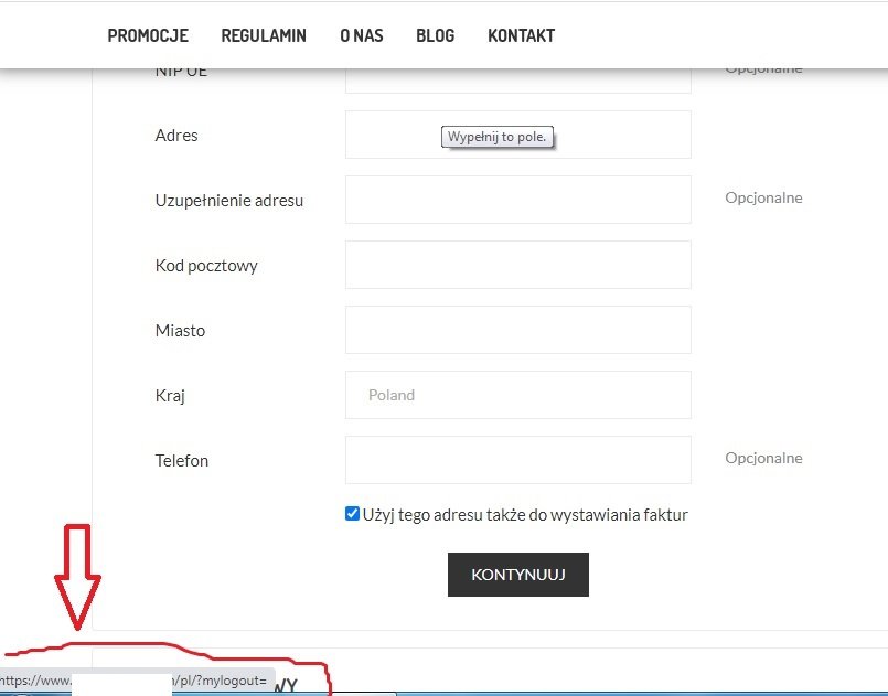 mam problem z formularzem zamówienia - po dodaniu produktów do koszyka i rozpoczęciu zamówienia, przy próbie wpisania adresu wysyłki, klikając w pole cała zawartość koszyka jest usuwana a użytkownik jest wylogowywany. Zauważałem, że na polach formularza pojawiło się hiperłącze https://www.stronawww.com/pl/?mylogout=.
