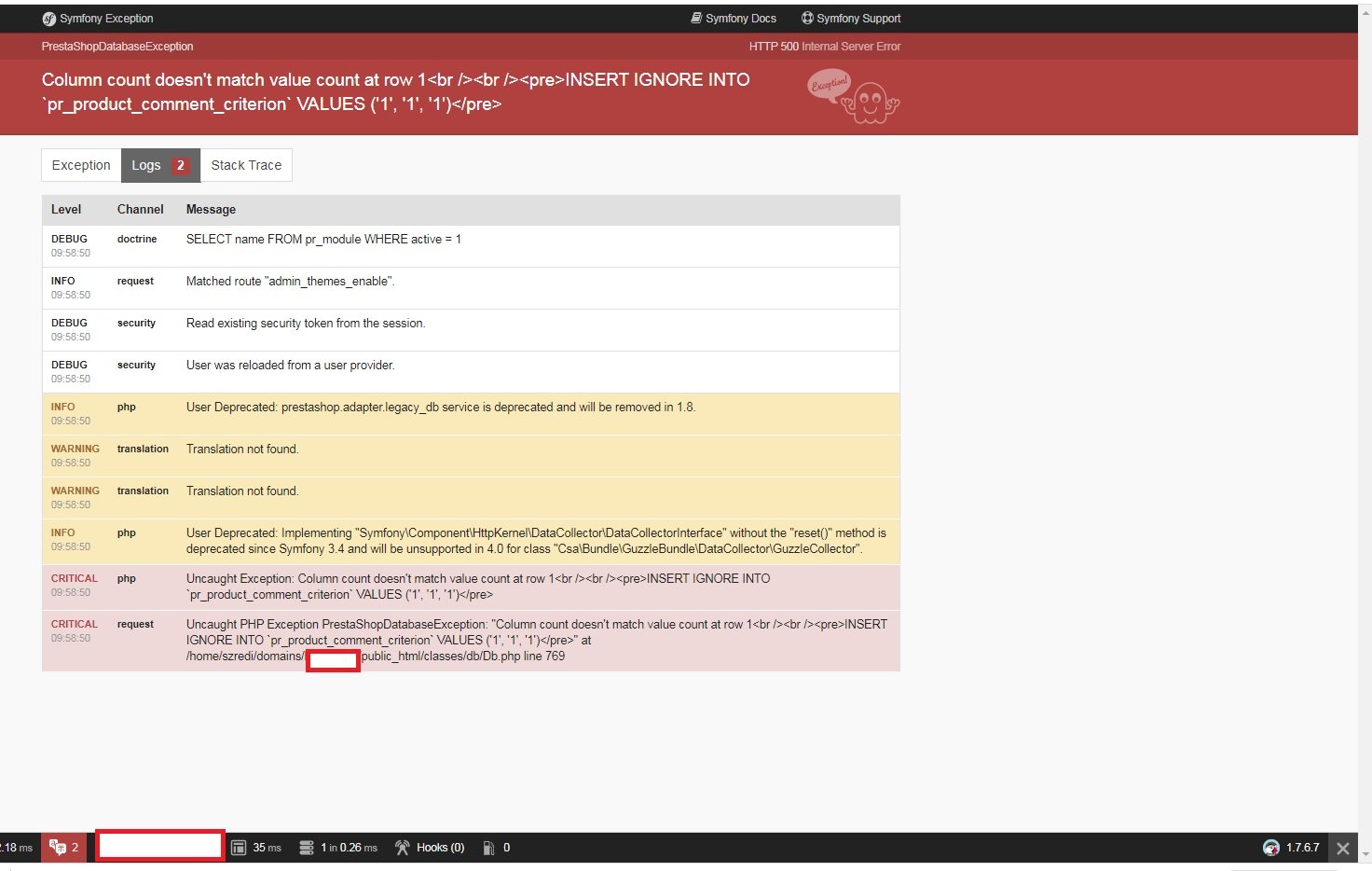 Podczas wybierania nowego szablonu otrzymuje błąd: "Column count doesn't match value count at row 1<br /><br /><pre>INSERT IGNORE INTO `pr_product_comment_criterion` VALUES ('1', '1', '1')</pre>"