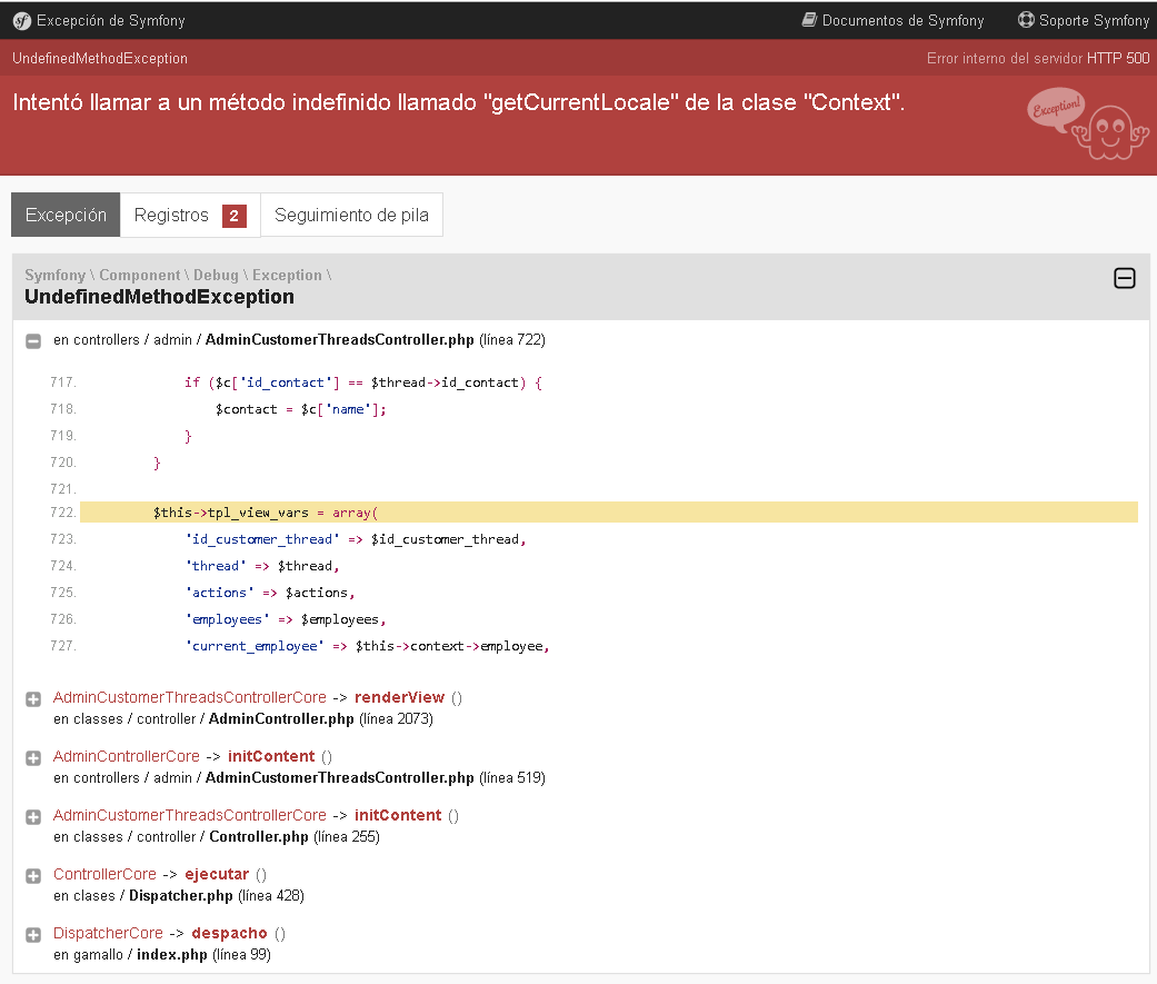 Hola tengo un problema cuando pulso sobre las lineas de los mensajes de los clientes, activé el modo debug y este es el mensaje que me devuelve.