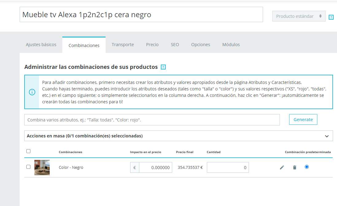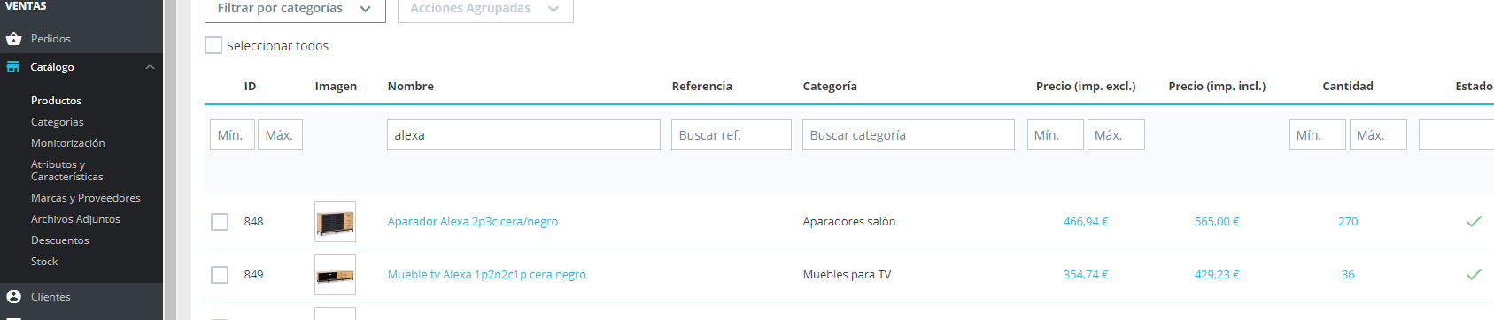 JavierP Posted August 29, 2020 Share Posted August 29, 2020 En 28/8/2020 a las 10:57 AM, toni_svo dijo: Hola, Yo en mi web actualizo el stock con un modulo propio. Me he dado cuenta que un producto que tiene combinaciones y tiene stock a cero en la pagina general de productos pone una cantidad de stock que no corresponde a la del producto. Adjunto fotos para que lo veais haber si alguien me puede decir que está pasando. La correcta es cero no 36 que no se de donde sale. En la tienda si sale correctamente y aparece cero unidades pero me provoca lio ver el 36 ahi. Os pongo aqui el codigo que conecta la base de datos igual falta algo: function get_id_product_attribute($ref){ $sql = "SELECT id_product_attribute FROM ps_product_attribute WHERE reference LIKE '".$ref."'"; $result = $this->conn->query($sql); $row = $result->fetch_assoc(); return $row["id_product_attribute"]; } function update_stock_single_product($id,$cant){ $sql = "UPDATE ps_stock_available SET quantity=".$cant." WHERE id_product_attribute LIKE '".$id."'"; return($this->conn->query($sql)); } function get_id_product_from_id_product_attribute($id_pa){ $sql = "SELECT id_product FROM ps_stock_available WHERE id_product_attribute LIKE '".$id_pa."'"; $result = $this->conn->query($sql); $row = $result->fetch_assoc(); return $row["id_product"]; } function update_group_combination_stock($id_prod){ $total = 0; $sql = "SELECT quantity FROM ps_stock_available WHERE id_product=".$id_prod." AND id_product_attribute<>0"; $result = $this->conn->query($sql); if($result==false){ echo "ESTE ID DA ERROR ---> ".$id_prod."<br>"; } while($row = $result->fetch_assoc()){ $total += $row["quantity"]; } //echo "<br/>total de producto ".$id_prod." => ".$total; $sql = "UPDATE ps_stock_available SET quantity=".$total." WHERE id_product=".$id_prod." AND id_product_attribute=0"; return($this->conn->query($sql)); } } Gracias, un saludo Buenas puede que al ser un producto con combinaciones, del producto principal (color Cera) si tengas esas 36 unidades pero del segundo producto "en color negro" tengas 0 unidades.. Yo a simple vista lo veo bien. No se si sera esa la confusión que tienes y no sea un error de stock. Saludos Link to comment Share on other sites More sharing options...