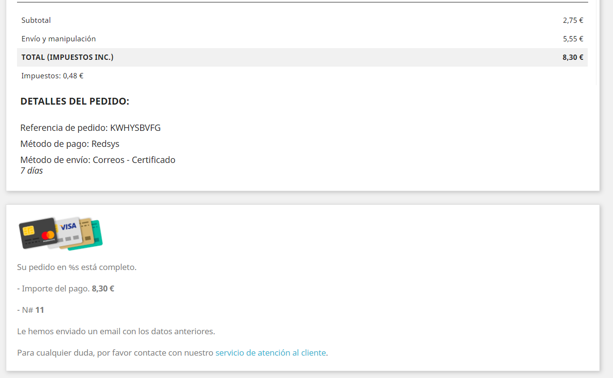 Solo queda modificar las traducciones para que en la página resumen final de Redsys aparezca la modificación y siempre eliminando caché para que aparezca.