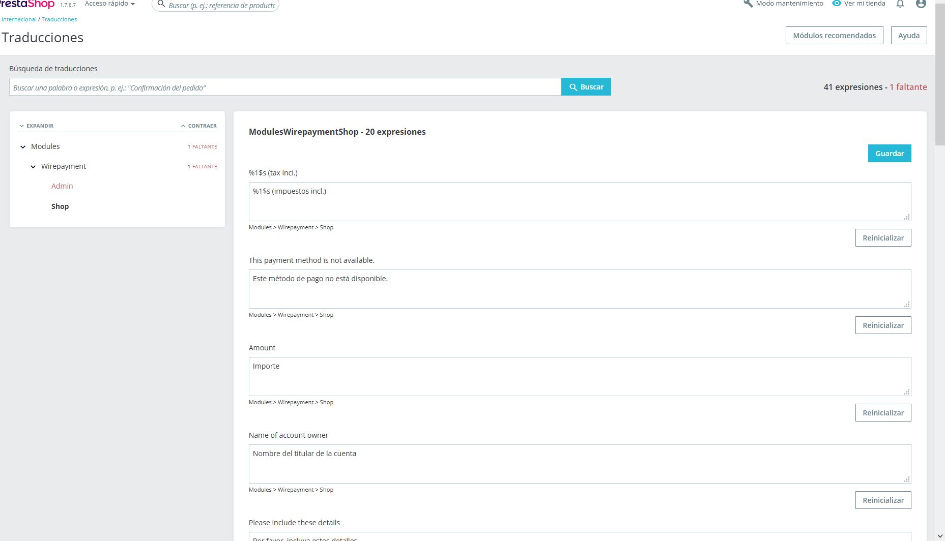 En las traduciones de módulos, en Redsys no aparecen todas las traducciones referentes a la página payment_return.tpl. Para que muestren todas las traducciones del módulo hay que hacer lo siguiente: