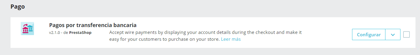 Es el modulo gratuito de transferencia bancaria de Prestashop. Si clickas en más información aparece el número de cuenta para hacer la transferencia y el pedido se queda con "obligación de pago", pero no realiza las mismas acciones que Redsis que finaliza el pedido con el importe y todos los datos del comprador. Desconozco si hay algún otro módulo que sea gratuito y se comporte como Redsis.