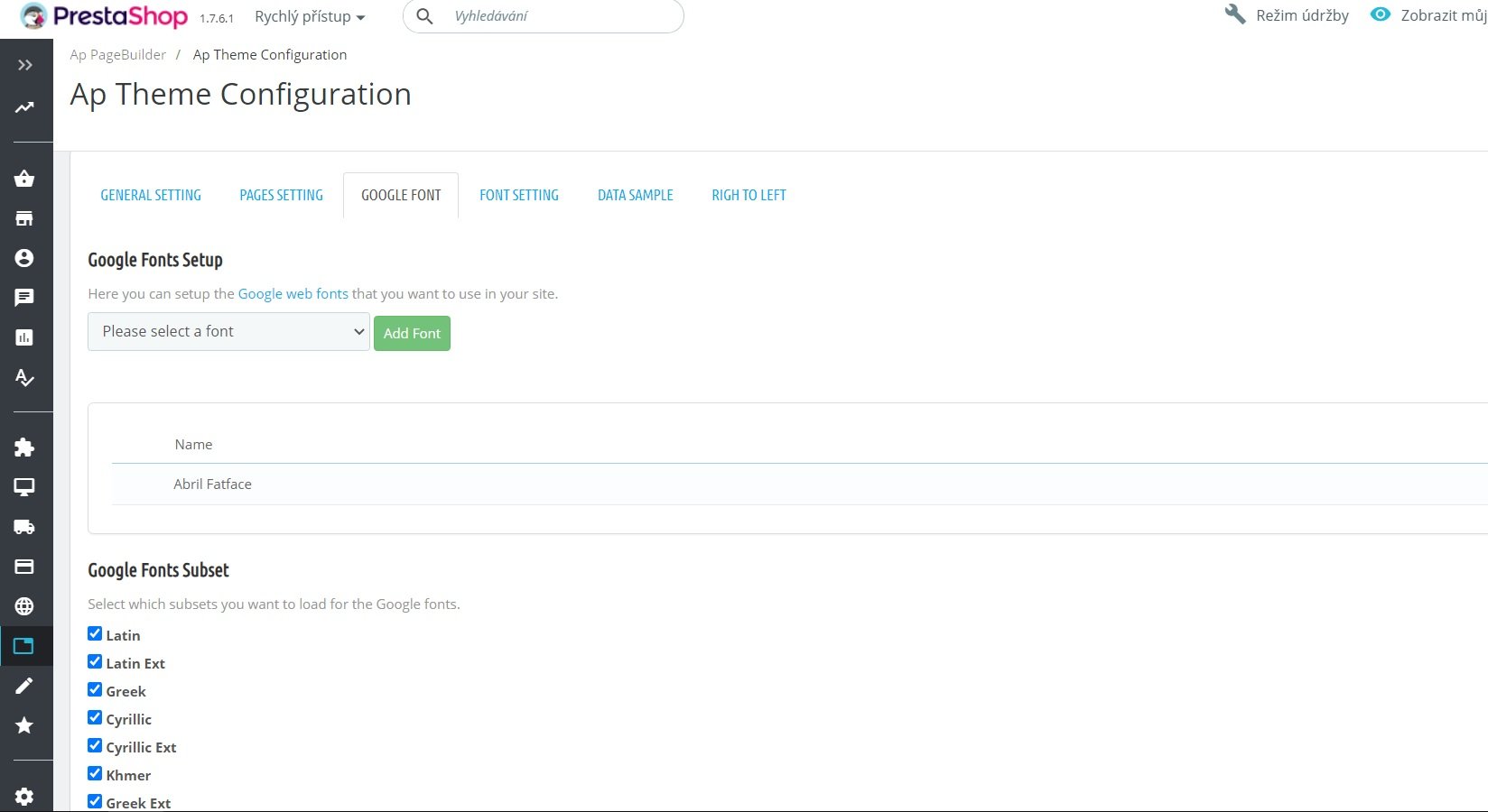 billabong6 Posted August 31, 2020 Author Share Posted August 31, 2020 2 minutes ago, tuk66 said: Toto je problém fontu. Nezná české znaky. Možná se jen nenačítá česká znaková sada, jestli se jedná o Google font. Jediné řešení je použít jiný font. Dík za rady. Áno tumu rozumiem, len skúšam všelijaké, ale nejak sa to nemení. Upravy som skúšal "ApThemeConfiguration - Google font" (prikáladam foto z adminu). Je to takto správne, alebo to treba zmeniť niekde inde? Dík za bližšie informácie Link to comment Share on other sites More sharing options...