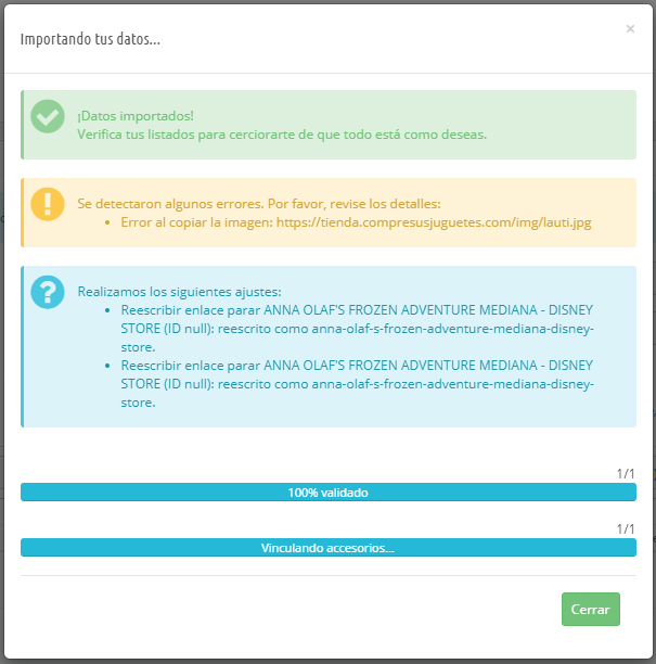 Jinimaru Posted September 3, 2020 Share Posted September 3, 2020 Buenas, utilizo un Prestashop 1.7.6.7 y cuando intento importar un .CSV de productos que ya pude importar en el pasado, ahora no me deja y aparece el siguiente error: Technical error: Unexpected response returned by server. Import stopped. ¿Alguien sabe a qué puede ser debido? Gracias! Link to comment Share on other sites More sharing options...