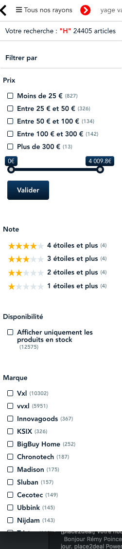Remy FRK Corp Posted September 8, 2020 Share Posted September 8, 2020 Bonjour à tous. Quelqu'un sait-il si il est possible d'installer un filtre à facette "note du produit'(dans la colone de gauche). Pour filtrer les produit en fonction de leur note (en nombre d'étoiles obtenues)...comme sur le screenshot : j'ai ratissé tout le catalogue modules et je commence à me dire que ça va finir par un dev de spécifique...donc au cas ou une solution existe déjà, je suis preneur. Link to comment Share on other sites More sharing options...