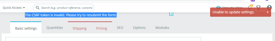 javi_2020 Posted September 17, 2020 Share Posted September 17, 2020 Actualmente estoy usando Prestashop 1.7.6 y me da error al editar el producto que viene de serie, no permitiendo que lo pueda editar ni volver a guardar. The CSRF token is invalid. Please try to resubmit the form. Unable to update settings. Le añadí la línea de código php_value max_input_vars 16000 y sigue sin funcionar. ¿Que otra configuración puede estar ocasionando esta situación? Link to comment Share on other sites More sharing options...