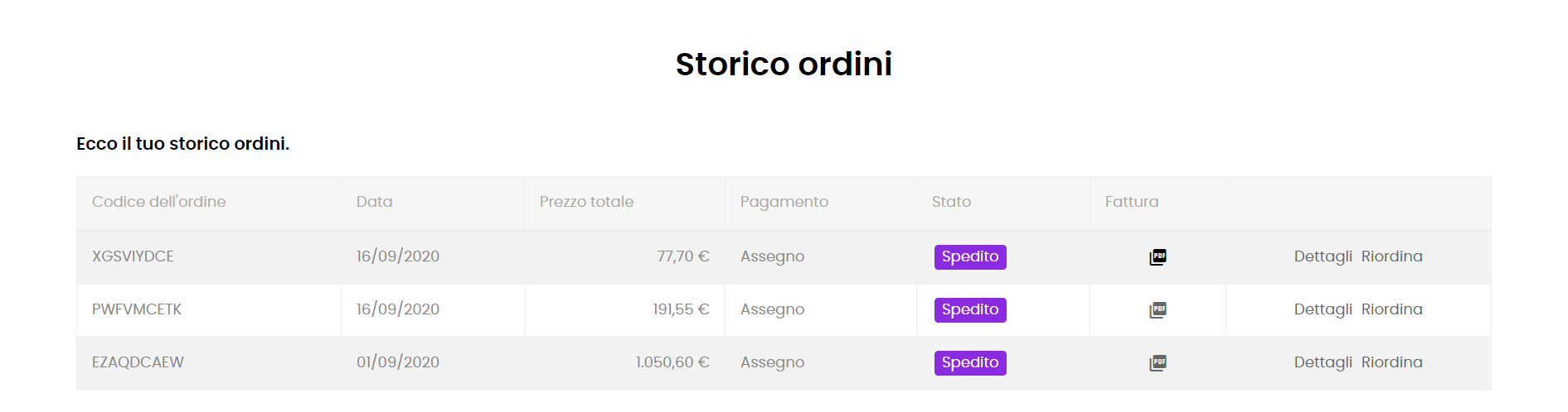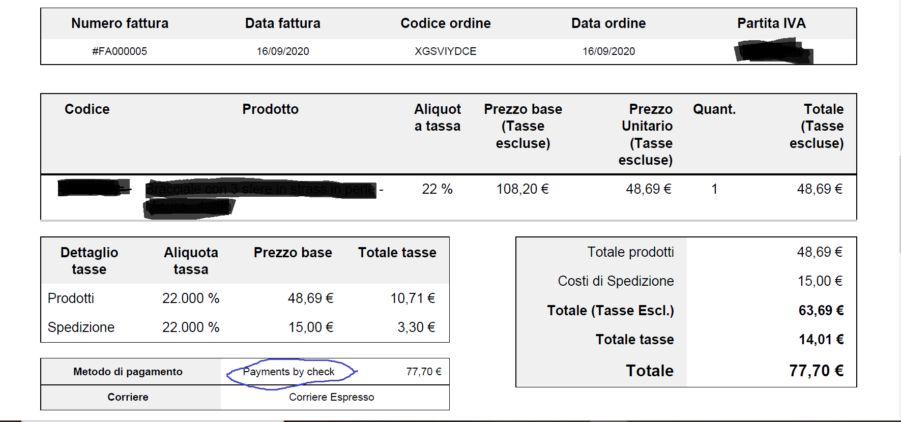 Nel primo caso i nomi sono in inglese sia nello Storico Ordini che in Fattura, nel secondo caso solo in Fattura, allego comunque immagini.