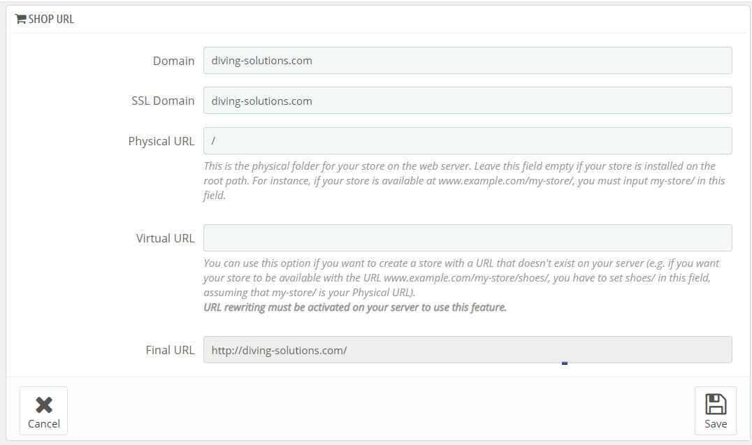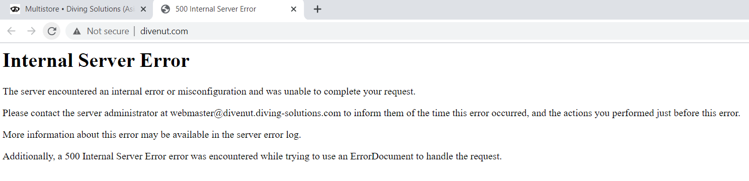 james_sgp Posted September 19, 2020 Share Posted September 19, 2020 I`m having a problem setting up an additional URL for a multistore. I already have 3 setup, and having no problems (diving-solutions.com - capture2.png) but when I try to add divenut.com (capture3.png) I get a 500 server error (capture4.png). Can someone advise what I`m doing wrong, as I`m following the same steps as I used for diving-solutions.com James Link to comment Share on other sites More sharing options...