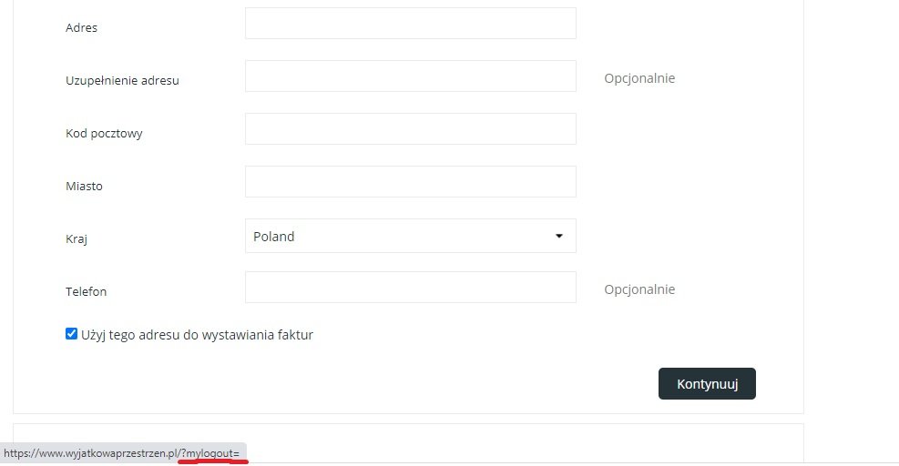 proszę o pomoc. Podczas najechania kursorem na pole  adresu (gdy jestem zalogowany) pojawia się link wylogowania. Gdy kliknę cokolwiek od razu mnie wylogowuje ze sklepu. Załączam zrzuty ekranu. Próbowałem szukać tego linku w plikach w folderze templateses / checkout ale nic tam nie było.