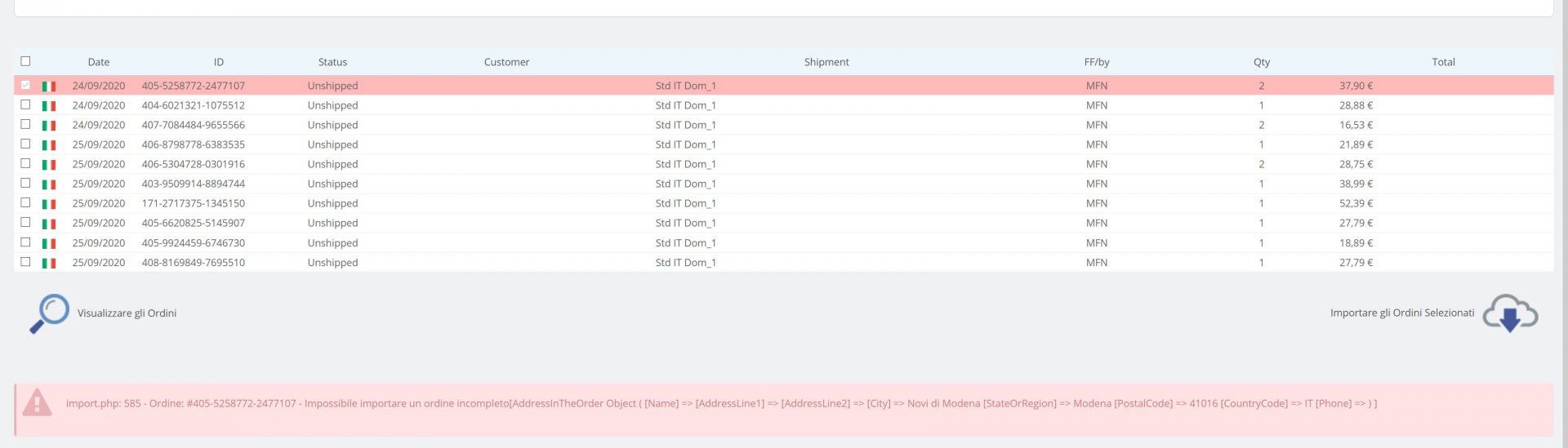 ziobudda Posted September 25, 2020 Share Posted September 25, 2020 Controlla lato Amazon quell'ordine. Come dice l'errore è incompleto in alcune parti importanti. Guardando così sembra che manchi l'indirizzo di spedizione. M. Link to comment Share on other sites More sharing options...