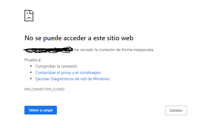 jamesosorio Posted September 27, 2020 Share Posted September 27, 2020 Tenga un excelente día, No acostumbro a preguntar por este medio porque primero miro soluciones por toda la web pero esta vez no encuentro alguna, Quisiera que por favor me ayudaran a solucionar el error al ingresar a Servicio al Cliente a responder los mensajes: No se puede acceder a este sitio web www.xxxxxxx.com ha cerrado la conexión de forma inesperada. Prueba a: Comprobar la conexión Comprobar el proxy y el cortafuegos Ejecutar Diagnósticos de red de Windows ERR_CONNECTION_CLOSED He hecho de todo pero no lo logro solucionar, alguna amable ayuda? Mil gracias. Link to comment Share on other sites More sharing options...