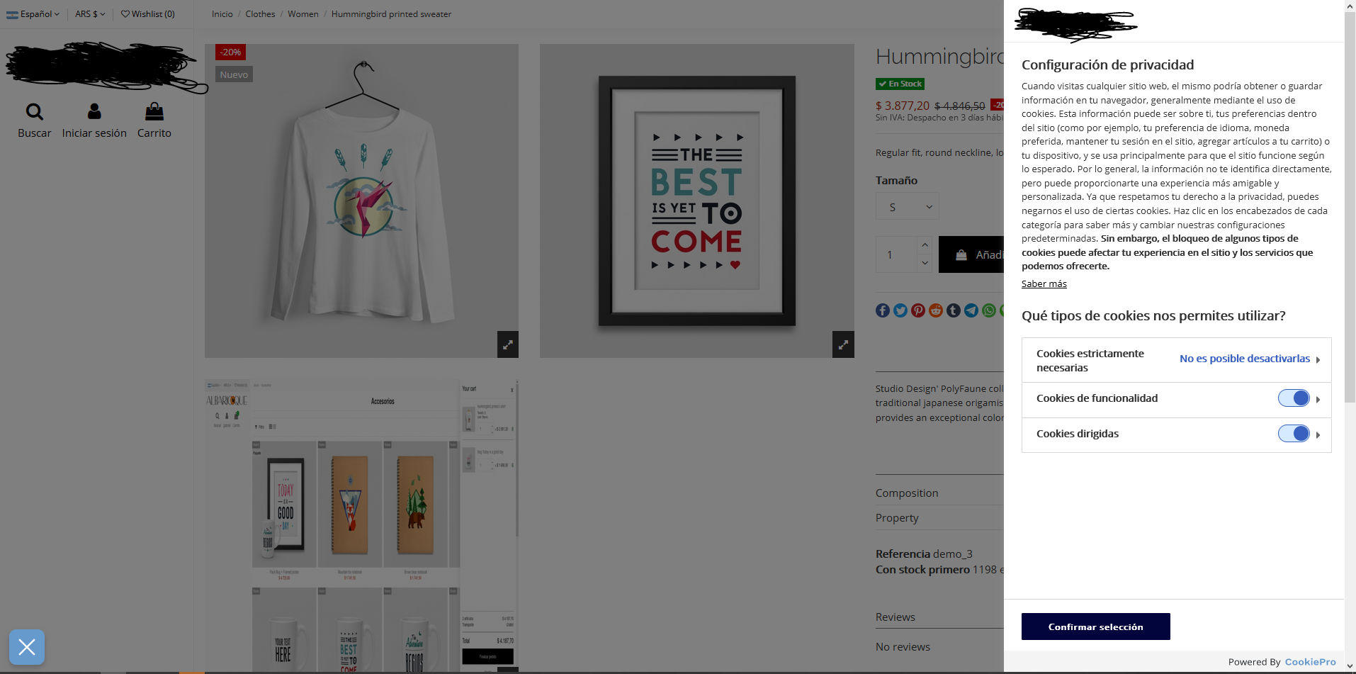 simchgab Posted November 28, 2020 Share Posted November 28, 2020 (edited) 5 hours ago, madeinspain said: Hola ¿podrías decirme mas concretamente donde se pega el script? Un saludo Cuando generas el script cookiepro te da el código para que pegues antes de la etiqueta <header> (deberías buscar un modulo o si la plantilla que utilizas permite inserción de codigo antes del header) y lo pegas ahí. Y después el script de la lista de cookies es un <div> </div> que pegas en tu página de cookies y muestra el listado con la información en los idiomas que hayas configurado de todas las cookies en el sitio y la info respectiva. En mi caso utilizo la plantillas wharehouse y en el editor de backoffice permite la inserción de código antes de la etiqueta <header> Algo así es el código que te brinda para colocar previo al header <script type="text/javascript" src="https://cookie-cdn.cookiepro.com/consent/48cd05fc-cab3-4e22-b3c8-test/OtAutoBlock.js" ></script> <script src="https://cookie-cdn.cookiepro.com/scripttemplates/otSDKStub.js" type="text/javascript" charset="UTF-8" data-domain-script="2-b3c8-8b7a61d920b5-test" ></script> <script type="text/javascript"> function OptanonWrapper() { } </script> El botón de no venda mis datos por si quieres agregarlo al footer es algo así <!-- Botón de configuración de cookies de CookiePro - Comienzo --> <button id="ot-sdk-btn" class="ot-sdk-show-settings">Ajustes de cookies</button> <!-- Botón de configuración de cookies de CookiePro - Finalización --> Lista de cookies en uso + info de las categorías y de las cookies <!-- Botón de configuración de cookies de CookiePro - Comienzo --> <button id="ot-sdk-btn" class="ot-sdk-show-settings">Ajustes de cookies</button> <!-- Botón de configuración de cookies de CookiePro - Finalización --> Todo estos scripts te los brinda cookie pro en la parte de "scripts" (NO UTILICES LOS QUE PEGUE ACA) Como yo lo tengo configurado para asegurarme que no se instale ninguna cookie más allá de las "técnicas" y asegurarme de tener el consentimiento por parte del usuario: En el centro de preferencias: Esto deja un icono flotate para que el visitante pueda cambiar su configuración ósea si ya habilitó las cookies pueda deshabilitarlas (Esta función por lo que estuve probando no elimina las cookies ya instaladas) por lo que debería ser necesario en la política de cookies informarlo y guiar al usuario a como eliminar las cookies una vez realizado el cambio de preferencias). O al menos para asegurarnos de que la información se la brindamos Y en la generación del script tengo configurado esto Con lo cual en la primer visita solo instala las cookies "técnicas" todo lo que pongas en ese grupo lo permite en el primer inicio después te bloquea el resto (No lo tengo en producción por ahora estoy haciendo pruebas) Edited November 28, 2020 by simchgab (see edit history) 1 Link to comment Share on other sites More sharing options...