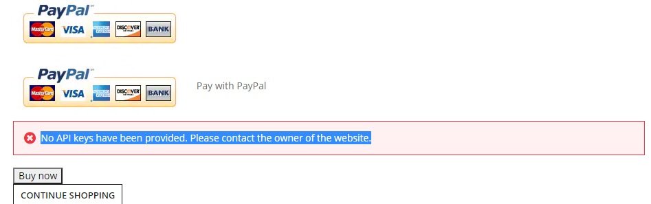 songshit Posted October 3, 2020 Share Posted October 3, 2020 Hi, As my customers proceed to the last step of checking out, they come across one warning text saying "No API keys have been provided. Please contact the owner of the website." Obviously this is something related to payment gateway. I have set my Paypal, which should be okay. After I disabled all payment gateways including Check, the problem still exists. Actually customer can still check out by Paypal. There must be something wrong with the warning. Please HELP!!! Link to comment Share on other sites More sharing options...