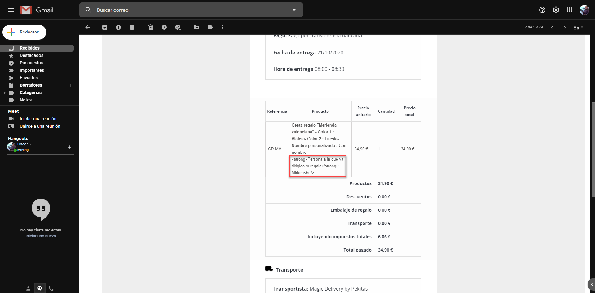 oscarxgil Posted October 7, 2020 Share Posted October 7, 2020 Hola, Tengo un problemilla con código HTML en el correo de confirmación de pedido, necesito que la gente pueda personalizar sus productos con textos pero al usar la opción de personalización de producto, hay parte de código HTML del correo que no funciona bien. ¿Alguna idea de cómo solucionarlo? Adjunto un pantallazo. ¡Muchas gracias! Link to comment Share on other sites More sharing options...
