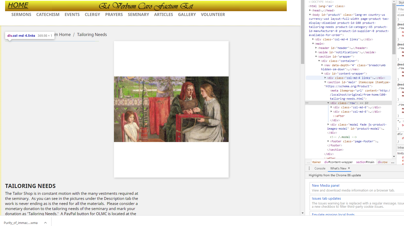 Christa_cross Posted October 10, 2020 Author Share Posted October 10, 2020 I've been troubleshooting and this is a clue. Another change I had TRIED to make before the layout of the product page changed was to move one of the link blocks using the Link Widget to different places around my site. I decided each place I moved it I did not like and I put it back to the footer. One place I had moved it was to DisplayLeftColumn. In the debug console I see the following <div class="col-med-4 links>....</div> in two places as you can see in the image attached. Then in the left hand column of my product page when I scroll over the <div> in the console a marker points to the div on the product page just to the left of the image. When I scroll over the other links div at the top of the console another marker points to a place at the very top of the page which is where I also experimented with placing my link list. Could it be that an invisible 'div' is still in my product page and if so how do I get it out. Has anyone else ever experimented moving the Link List around and then having trouble with formatting? I hope someone can help me because the page is product page is very ugly now. thank you. Link to comment Share on other sites More sharing options...