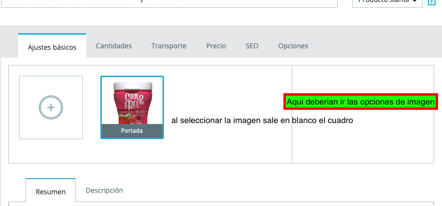 vigiasystem Posted October 15, 2020 Share Posted October 15, 2020 Hola amigos. He terminado mi tienda sweetland.com.co, al crear productos todo va bien, el problema es cuando intento eliminar una imagen de producto, al seleccionar la imagen que deseo eliminar, el recuadro de opciones que carga al lado de la imagen, que da la opción de comentar, eliminar o seleccionar como imagen de portada, carga en blanco. Como soluciono este probema? adjunto imagen Link to comment Share on other sites More sharing options...