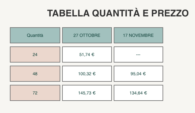 MarcelloF Posted October 20, 2020 Share Posted October 20, 2020 Ciao, scusate ma sto iniziando adesso ad avvicinarmi a Prestashop e probabilmente chiedo qualcosa che già esiste.... Vorrei sapere se c'è la possibilità di creare una tabella con quantità e prezzo e data di consegna del prodotto già presettati, come nell'esempio della tabella che allego. Il prezzo varia in base alla quantità e alla data di consegna. Ringrazio in anticipo per le risposte. Marcello Link to comment Share on other sites More sharing options...